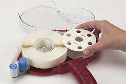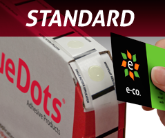 a preformed 1/2" diameter flat dot of glue. Dots are packaged in a convenient,
